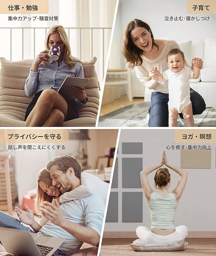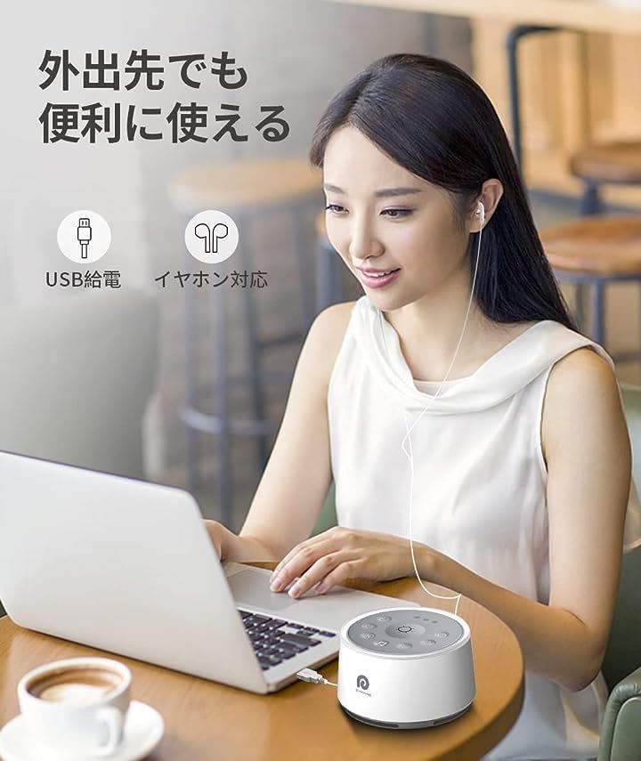 ホワイトノイズは全帯域にわたるひとつひとつの周波数をほぼ均等に持ったノイズであり、騒音を目立たなくさせるや一つの音に意識がいってしまうのを防いでくれる効果があるので、安眠しやすくなるや集中力を上げることができます。