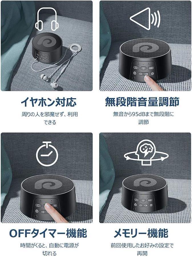 設定した時間がくると、音量が徐々に小さくなっていくので、睡眠を妨げず、手動でスイッチを切る必要もありません。