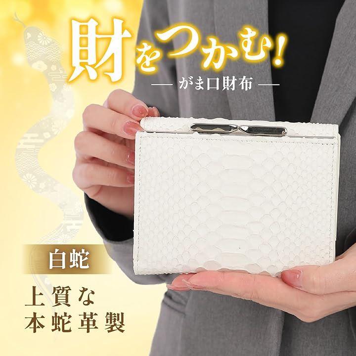 「金運アップのお財布が欲しいけれど、人と同じはつまらない」「本当に効果がありそうな、本蛇革の金運財布を探している」「がま口の使いやすさが好き」そんな方に手にしていただきたい、日本製、白蛇デザインレザーがま口財布です。