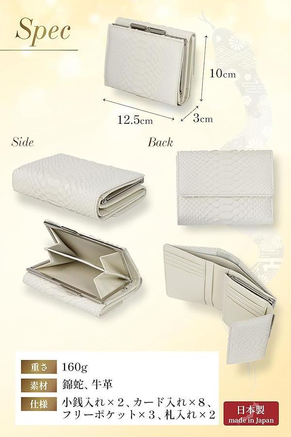 「スペック」がま口小銭入れx2(中仕切り)札入x2 カード入れx8 フリー ポケットx3 SIZE:(約)12.5x10x3cm 「重量」(約)160g 素材:外面:錦蛇革 中面・牛革 原産国:日本製 (高級・総ハンドメイド品)*天然皮革の為、個体による薄い擦れ傷などがある場合がございますが不良品ではございません。
