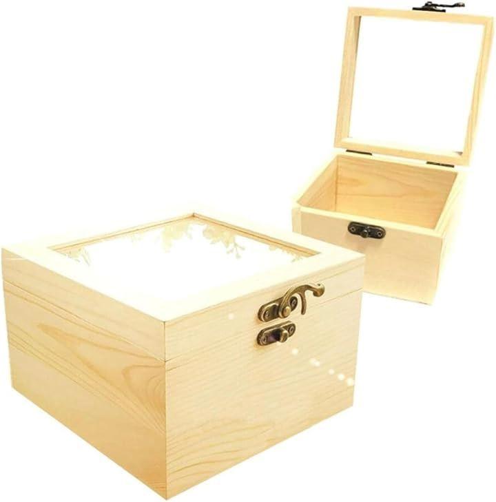 White wood display case, set of 2, glass lid, window, with hook, square wooden box SW2224Medium W12xD12xH8.5cm