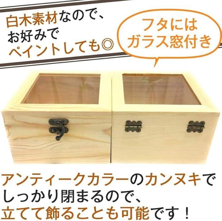 3world 白木 ディスプレイ ケース 2個セット ガラスフタ 窓 カン付 正方形 木箱 木目がきれいな白木でできたディスプレイボックスです。