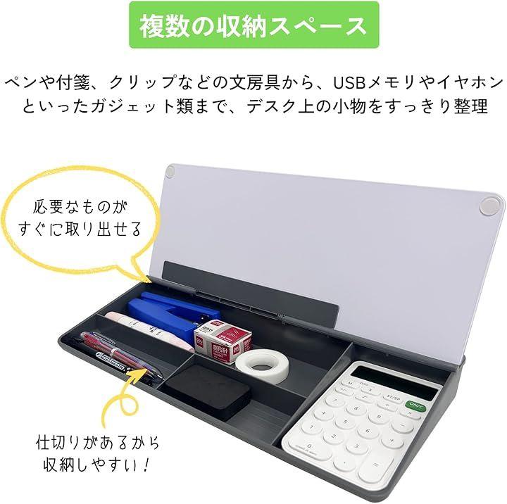 複数の収納スペースで、ペンや付箋、クリップなどの文房具から、USBメモリやイヤホンといったガジェット類まで、デスク上の小物をすっきり整理。