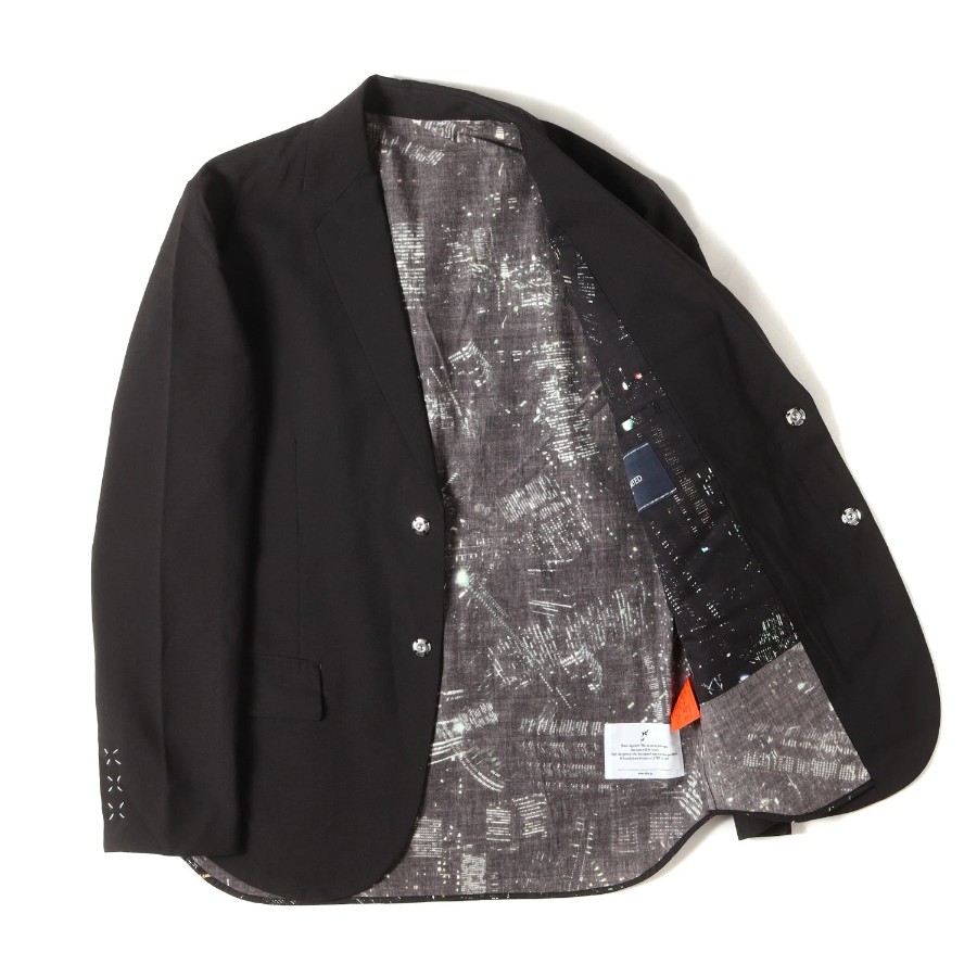| 商品説明 | ・夜景柄の切替しデザイン ・本体 T/W平織り生地 ・切替し部分 コットンブロード生地 ・2つボタン ・全て比翼スナップボタン |