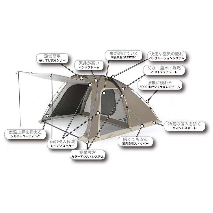 ●フライシート: ポリエステル(耐水圧 3,000mm、撥水加工、防水シームシール加工、UPF50+、裏側シルバーコーティング、難燃加工)●インナーテント: ポリエステル(耐水圧 500mm、撥水加工) ●フロアー: ポリエステル(耐水圧 5,000mm、撥水加工)●フレーム(メインポール ):ジュラルミンポール 2本, L512cm, φ11mm(0.7t) BLUE/RED、11セクション●フレーム(サイドポール ):ジュラルミンポール x 1本, L398cm, φ9.5mm(0.7t) SILVER、8セクション●サブフレーム (フロントルーフ):ジュラルミンポール x 1本, L146cm, φ6.3mm(0.7t) SILVER、3セクション●張り綱ロープ(シングル):ポリプロピレン/蓄光自在ストッパー付き(太さ3.5mm、長さ 250cm x 5, 150cm x 6pcs)●ペグ:スチール 22本●収納袋:ポリエステル対象シーズン: 2シーズン部門名: ユニセックス大人Whole Earth