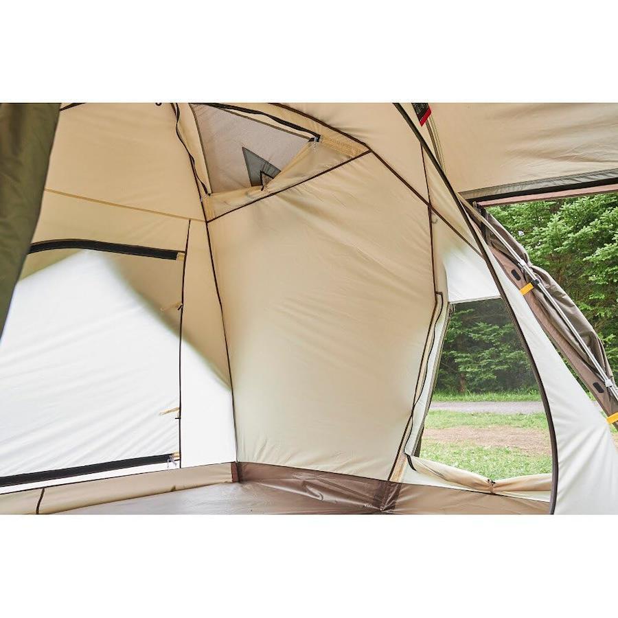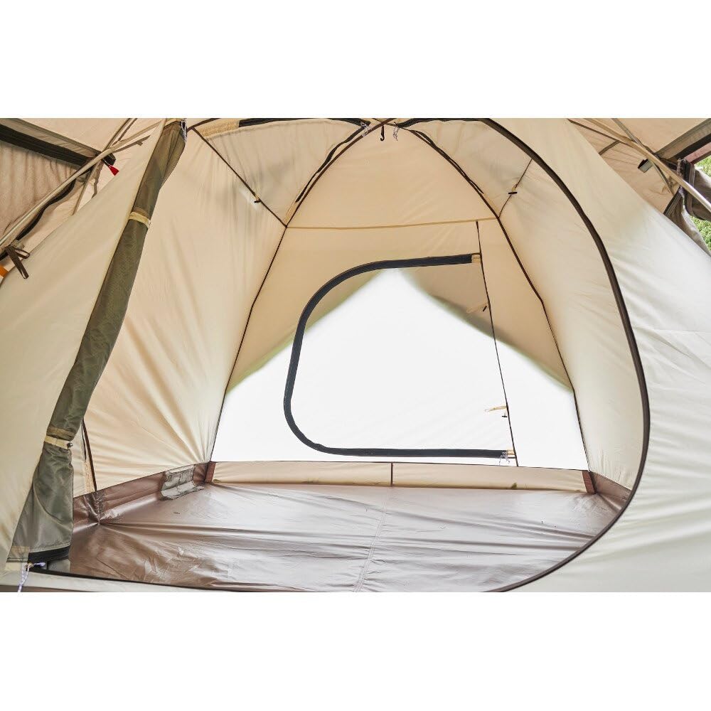 ●フライシート: ポリエステル(耐水圧 3,000mm、撥水加工、防水シームシール加工、UPF50+、裏側シルバーコーティング、FR難燃加工)●インナーテント: ポリエステル(耐水圧 500mm、撥水加工) ●フロアー:ポリエステル(耐水圧 5,000mm、撥水加工)●フレーム(メインポール):ジュラルミンポール 2本, L543cm, φ13mm(1.0t) YELLOW×SILVER、11セクション●フレーム(サイドポール):ジュラルミンポール 1本, L495cm, φ11mm(1.0t) RED×SILVER、9セクション●フレーム(前室ポール): ジュラルミンポール 1本, L432cm, φ11mm(1.0t) BLUE、8セクション●ペグ:スチール 28本●張り綱ロープ(シングル):ポリプロピレン/蓄光自在ストッパー付き(太さ3.5mm、長さ250cmx 9 pcs)●収納袋:ポリエステル