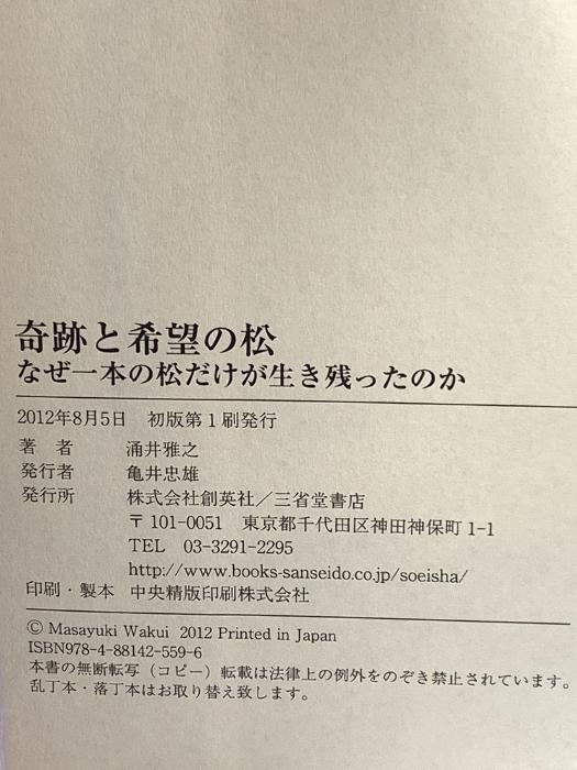 Why Only One Pine Tree Survived: The Pine Tree of Miracles and Hope, Soeisha/Sanseido Bookstore, Masayuki Wakui