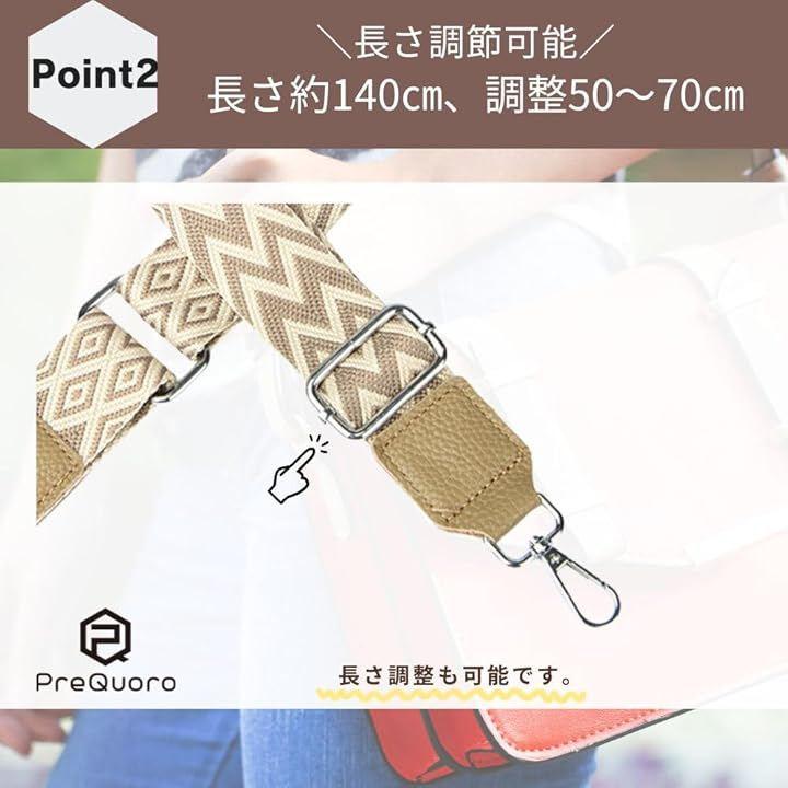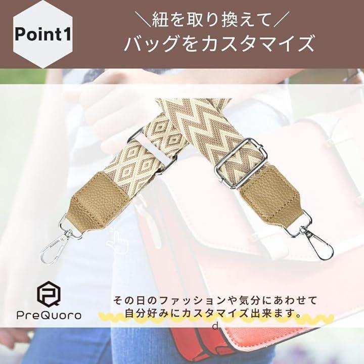 「ショルダーバッグをもっとおしゃれにカスタマイズ」PreQruooのバッグストラップは、女性用にデザインされた幅広ショルダーで快適な使い心地。