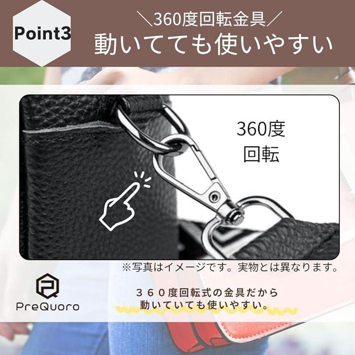 「幅広ショルダーで肩ラクラク」PreQruooのバッグストラップは、幅広で肩に優しく、快適な使い心地が特徴です。