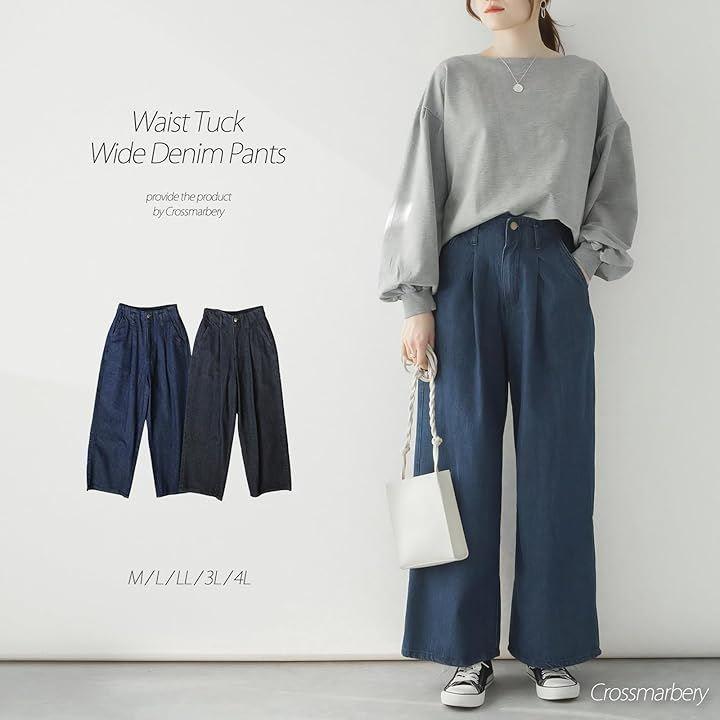 ワイドなのにすっきりシルエット、両サイドに施されたウエストタックは陰影を作り、ウエストまわりを細見えに演出。