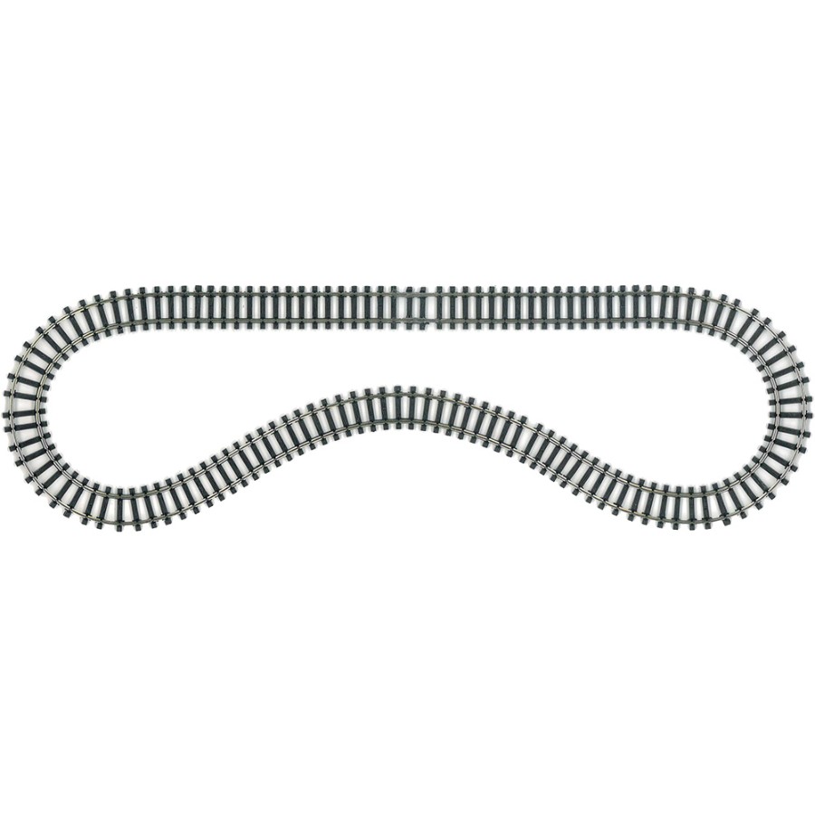 【ご注意】R40(直径80mm)のきわめて小さな半径のカーブレールです。手加工品のため多少ゆがみがあります。カーブが急で、レール給電も考慮していないため、電池内蔵型のミニミニトレイン以外での走行は想定していません。写真の車輌、撮影小物は組み合わせイメージで商品には含まれません。