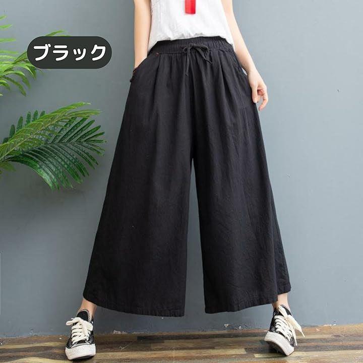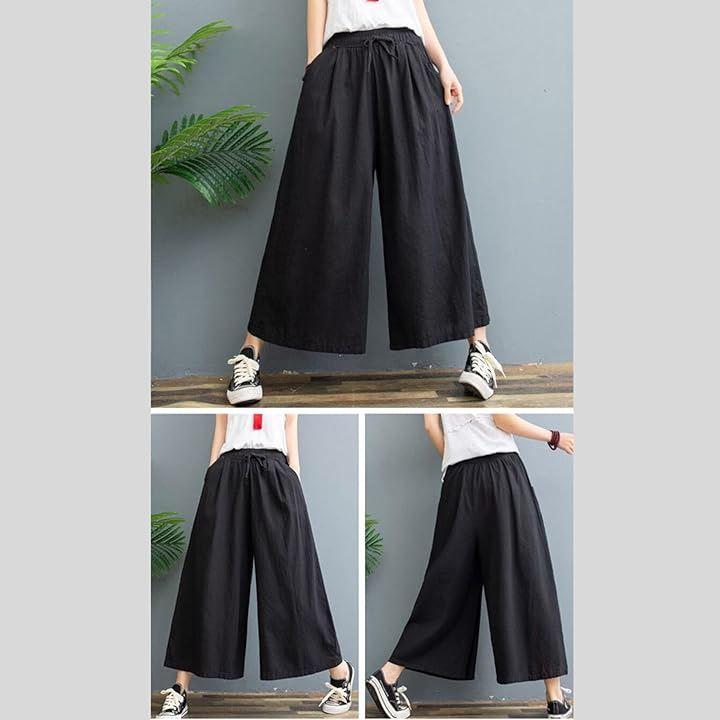 Wide-leg gaucho pants, 3/4 length, linen and cotton, available in plus sizes, loose fit, elastic waist, perfect for office or casual wear