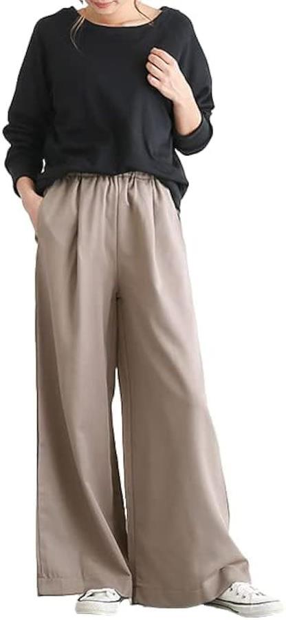 新しいファッショントレンドのレデースワイドパンツが登場。毎日履きたくなるようなウエストゴムのワイドタックパンツ。