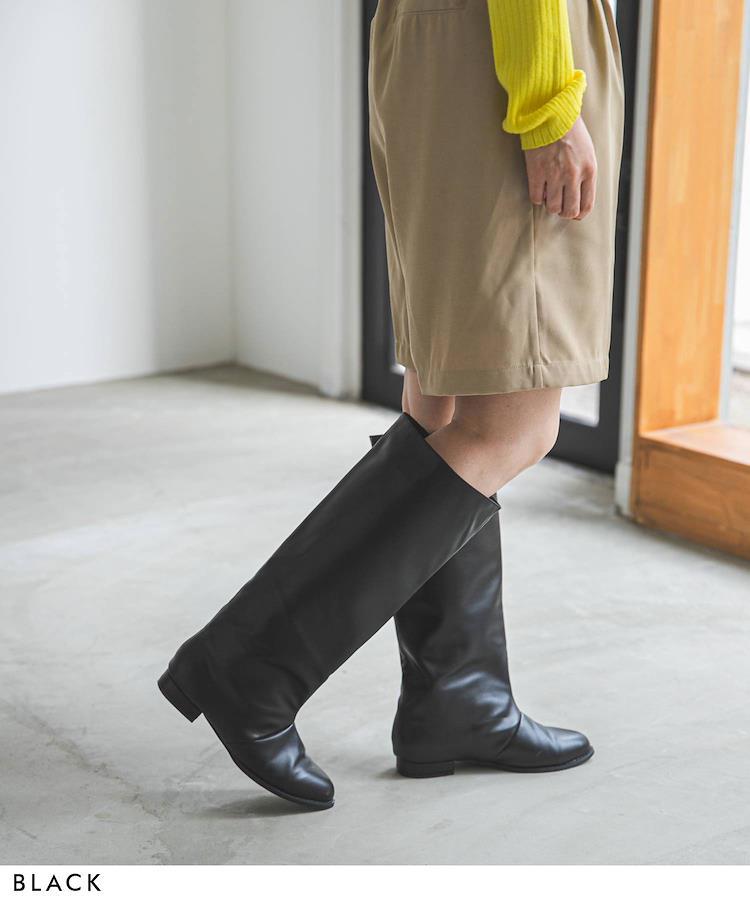 ストレートなワイドシャフトが旬の足元に導いてくれるロングブーツ。