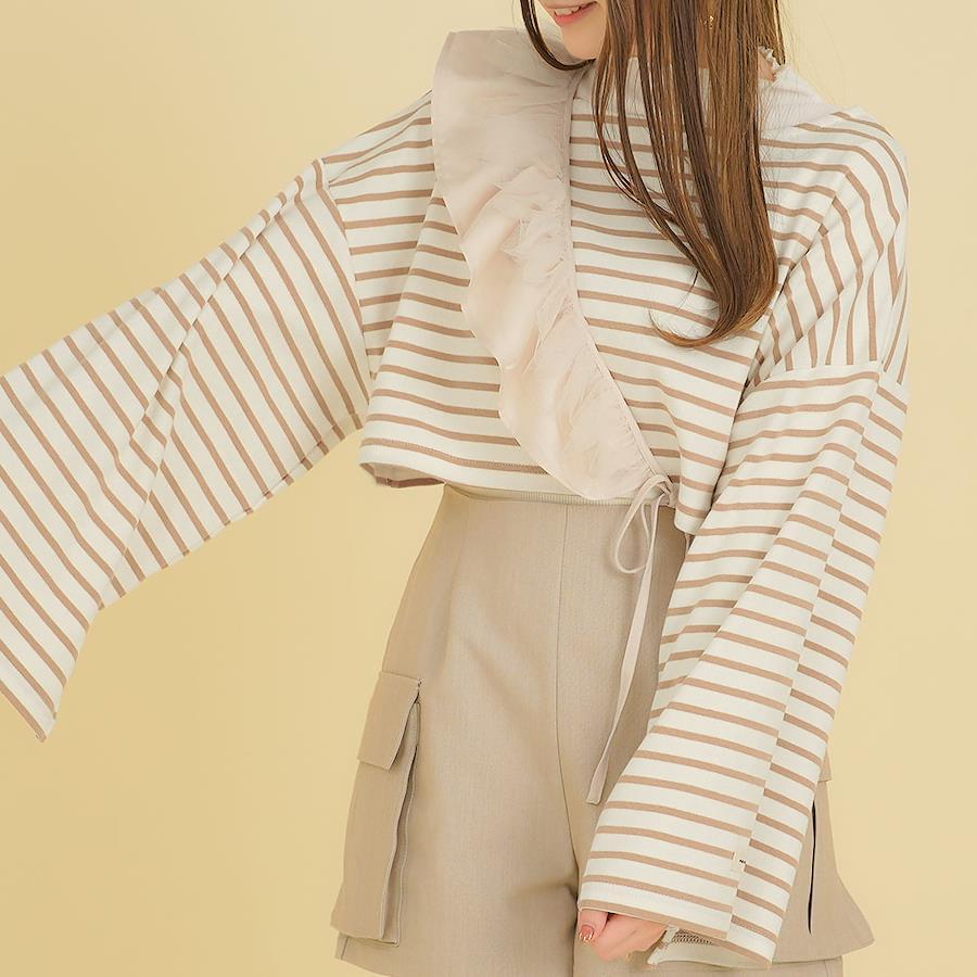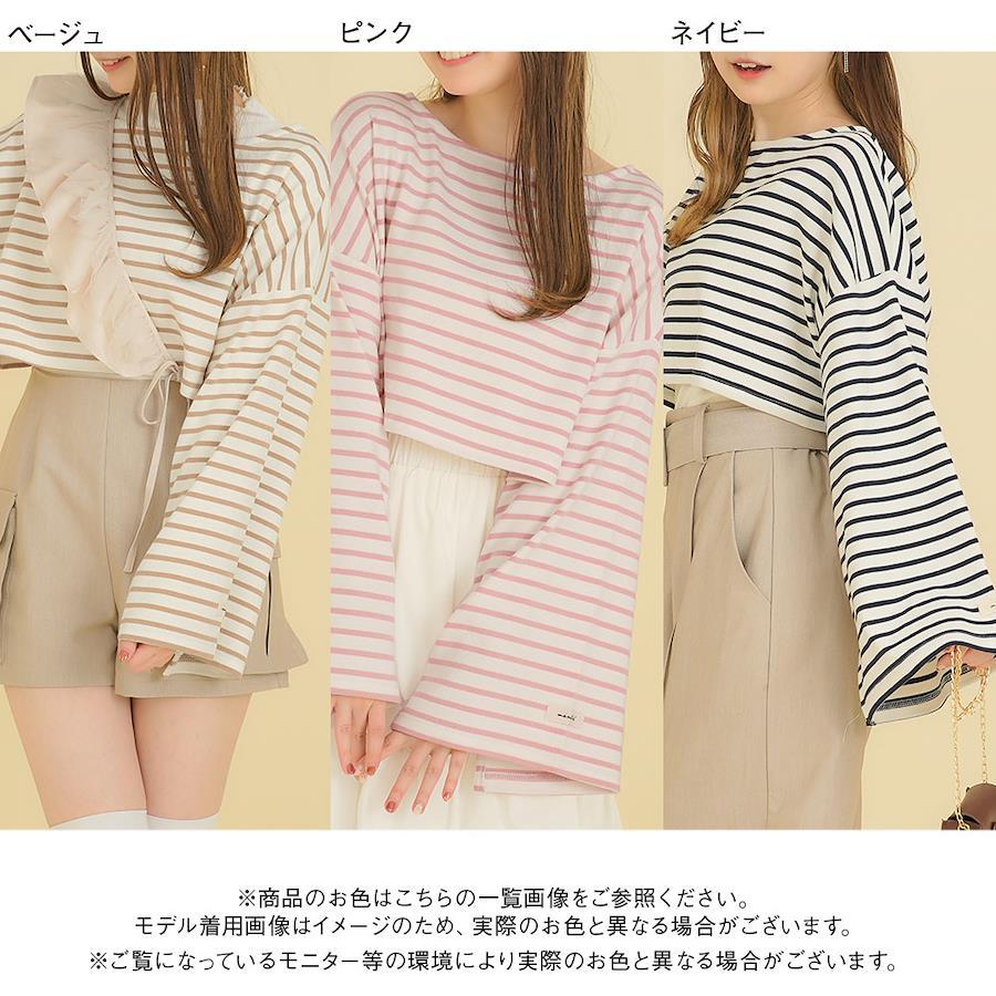 淡いボーダーカラーがかわいいカットソートップス。