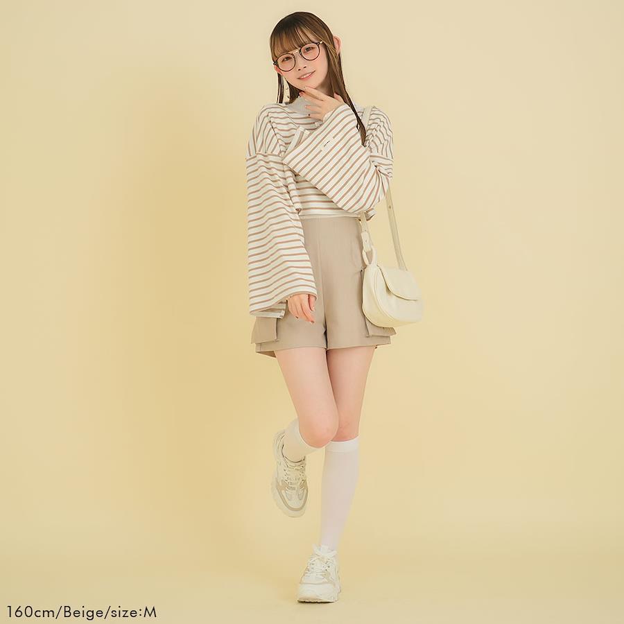 【素材】やわらかいカットソー素材を使用。薄すぎない生地で肌ざわりも良いです。淡色コーデにぴったりなベージュに、今年トレンドのピンク、どんなシーンでも活躍するネイビーの3色をご用意。