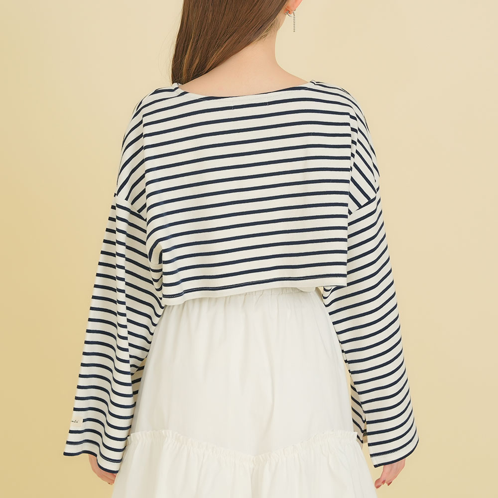 【デザイン】ワイドスリーブがmoulisらしいデザイン。クロップド丈が今年らしく、1枚で旬コーデになるアイテムです。襟ぐりはすっきりとしたボートネックになっているので、骨格問わずすっきりと着ていただけます。