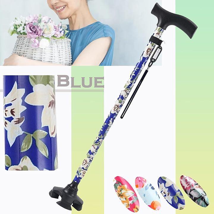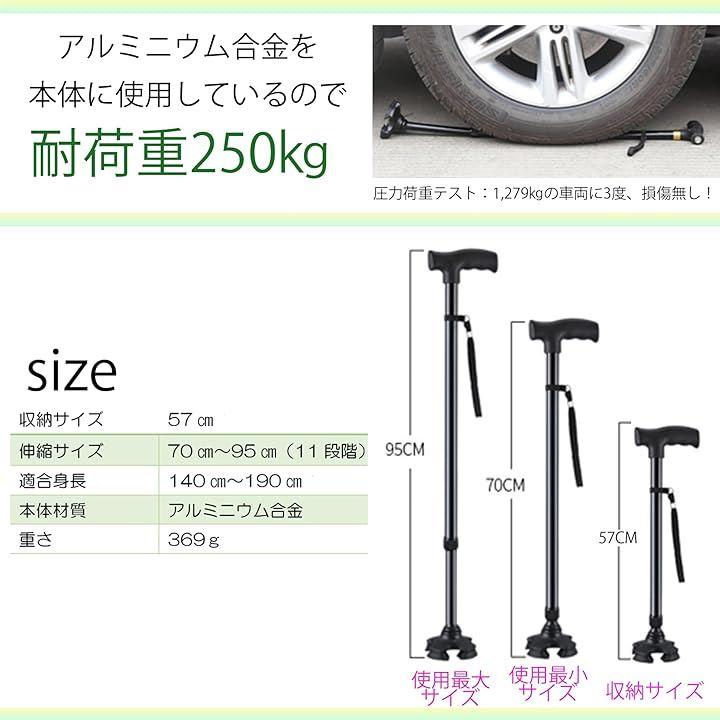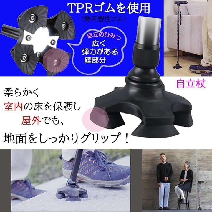 「自立杖」杖の底面は、約9センチの幅広さがあり、TPRゴム(熱可塑性ゴム)を使用している為、弾力のある柔らかさでしっかり地面をグリップし、杖本体が自立出来るようになっている。