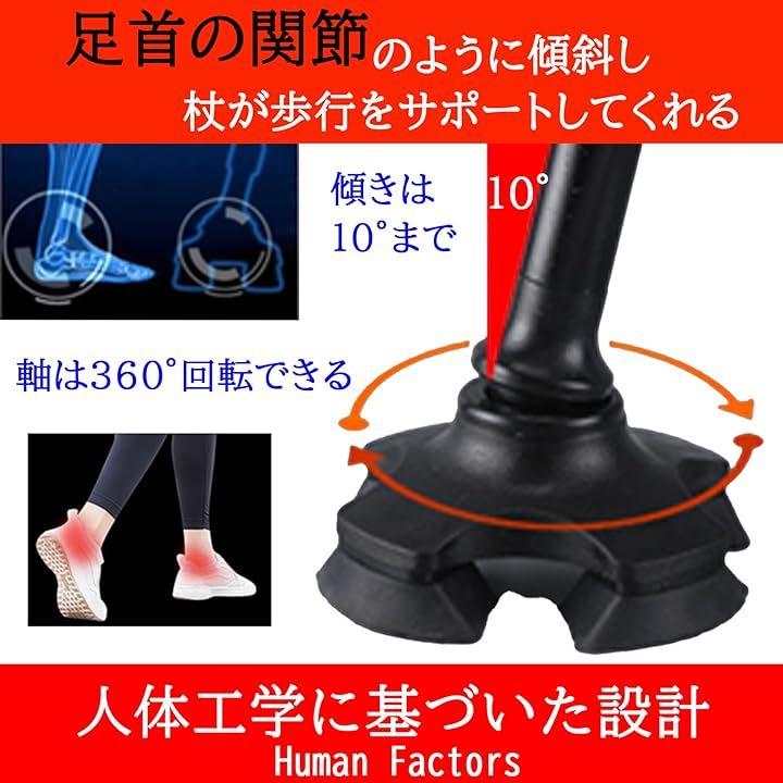 また、軸は360°回転できるため、立ち上がり時や体重移行の微妙な身体の重心を杖に伝え易く、自然とそれに応じた回転をし、使用者をサポートしてくれる。
