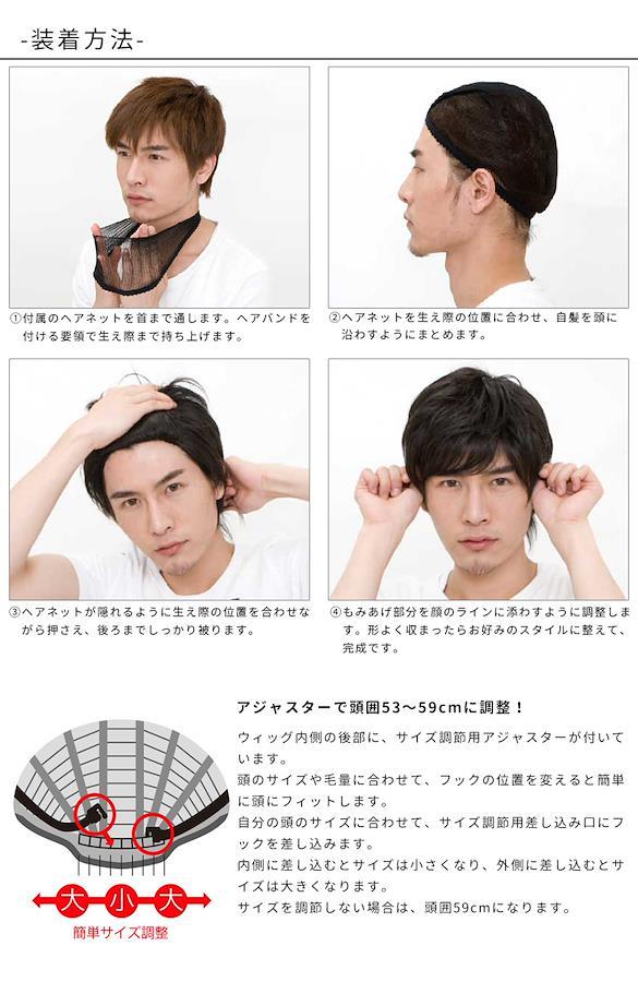自毛を見せずにスッポリとかぶる「かつら」タイプの男性用ウィッグ