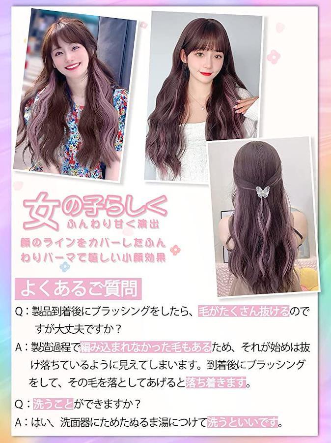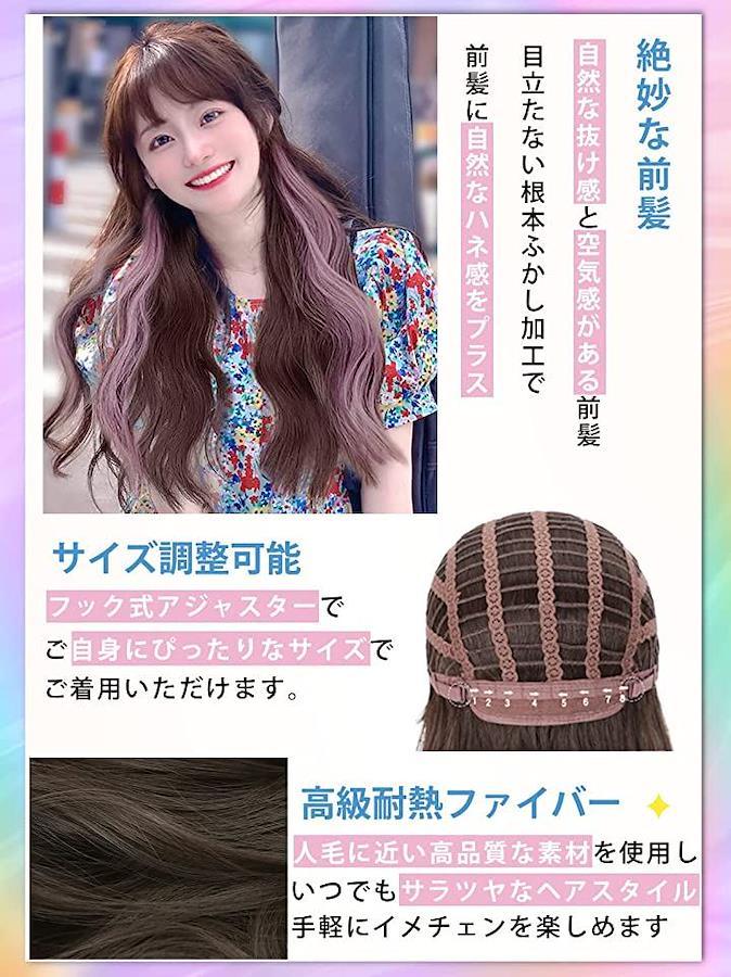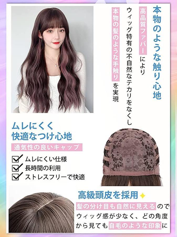 小顔効果がありロングヘアウィッグ、つむじには、頭皮に近いカラーのI型人工頭皮を採用。