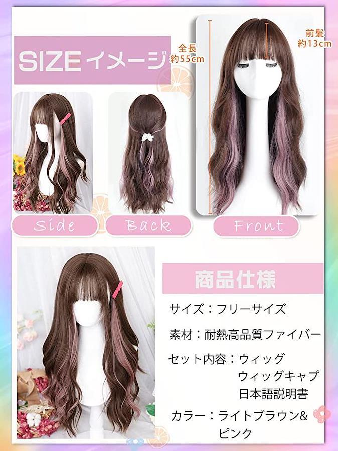 ・「ウィッグサイズ」:(1)前髪:つむじから約13CM,後ろ髪:つむじから約60CM。