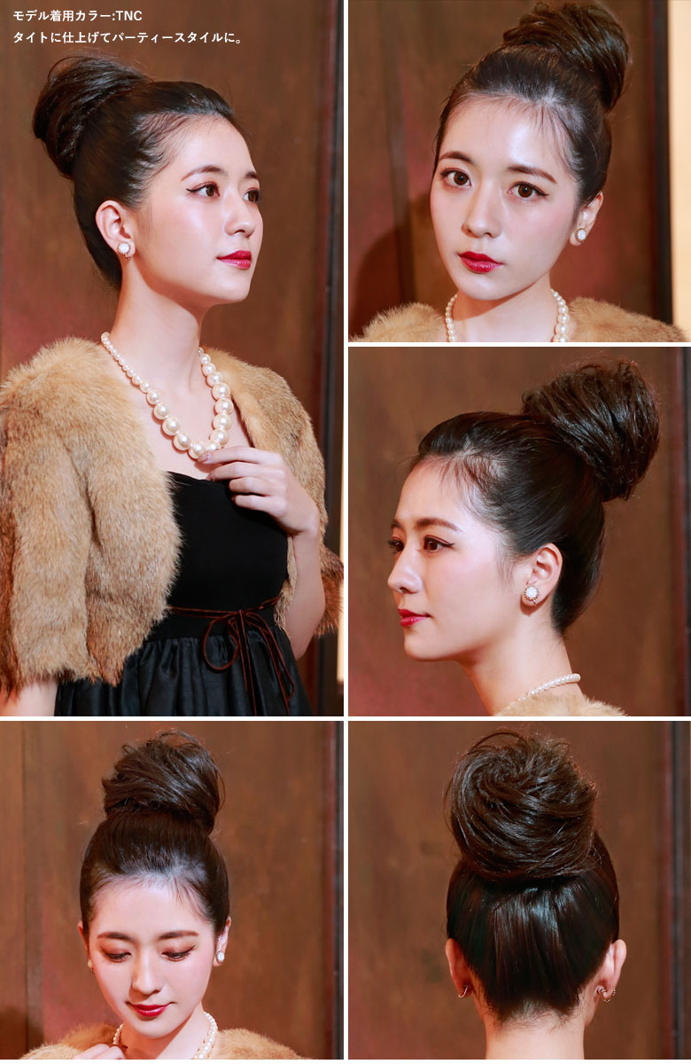 自毛では案外難しいお団子スタイルを簡単に作ることができます。