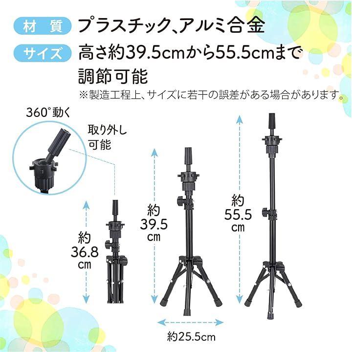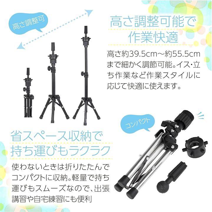 カット練習やウィッグスタイリングに最適な、合金製のマネキン三脚スタンドです。