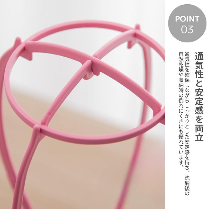 「型崩れをしっかり防止」ウィッグの型崩れを防ぐスタンド設計で、形をきれいに保ちつつ長期間の保管や乾燥にも安心して使えます。