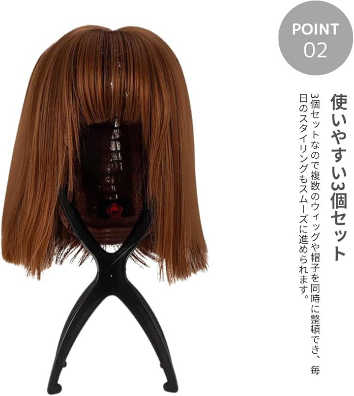 「使いやすい3個セット」3個セットなので複数のウィッグや帽子を同時に整頓でき、毎日のスタイリングもスムーズに進められます。