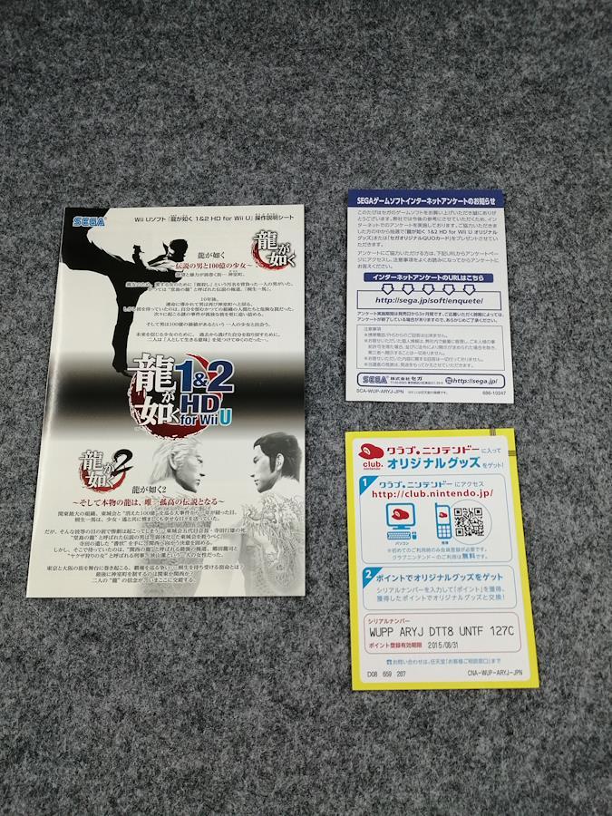 コード■特徴・備考WiiUソフト「龍が如く1&2 HD for WiiU」