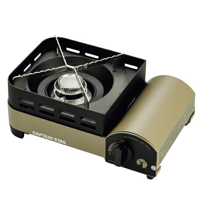 風に強い風防機能付きカセットコンロ。風に強く安定した火力で野外料理が楽しめます。防災用や緊急時にも便利!