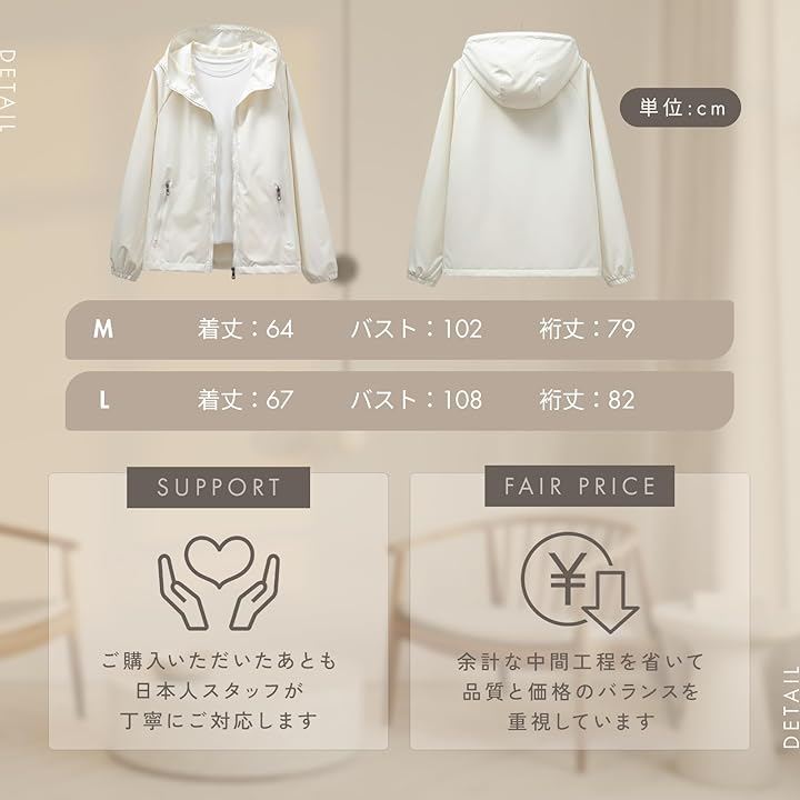 「サイズ詳細(単位:cm)」 * Mサイズ 着丈:64 バスト:102 裄丈:79 * Lサイズ 着丈:67 バスト:108 裄丈:82 *サイズには若干の誤差が生じる場合がございます。