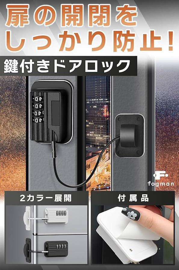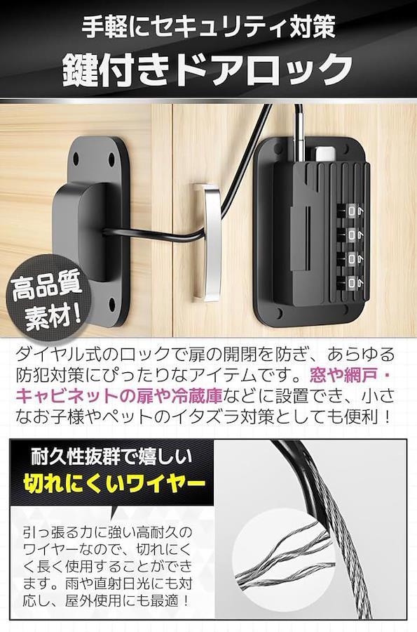 「鍵付きドアロック」ダイヤル式のロックで扉の開閉を防ぎ、あらゆる防犯対策にぴったりなアイテムです。