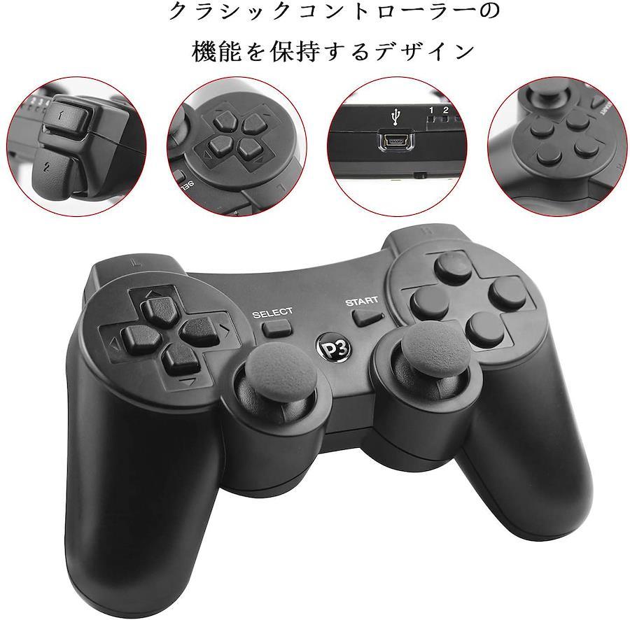 ??【サードパーティー製品です】(非純正品)六軸センサー付、振動対応、純正PS3コントローラと同じ機能を備えています。オリジナルサードパーティー製なので若干デザインが異なります。完璧を求められる方は純正品をお買い求めください。 ??【DOUBLESHOCK3用、6軸用】あなたがゲームのように感じるあらゆるインパクトを作る各アクションでうなる圧力センサー。高感度モーションコントロールシステムは、あなたのあらゆる動きを感知します。コントローラーを動かしたりすると、ゲーム内のオブジェクトも動き、反応します。 ??【人間工学に基づい】最も古典的な形状P3コントローラ完璧にフィット手のひら、すべてのボタンとコントロールがゲームプレイの長い期間のためにあなたの手は非常に快適にします。あなたの子供や友人がこのような美しいコントローラーを受け取るのは大きな驚きです。 ??【使いやすい】PS3本体に接続するだけすぐに使うことができます。難しい設定が不要ですので、手軽に遊べます。複数同時接続で遊ぶこともできます。手にフィットするので、純正コントローラと同じ感覚でゲームを楽しめます。FPSをプレイしたい場合は、購入することはお勧めしません。 ??【100%顧客満足度】最高のPS3付け替え用ゲーム機コントローラです。ご購入日から、1年間の品質保証サービスをご提供いたします。万が一、届け違いや不備・不良がございましたら、メールにてご連絡ください。日本語のマニュアルを受け取っていない場合は、会社に連絡してください。電子ファイルをお送りします。