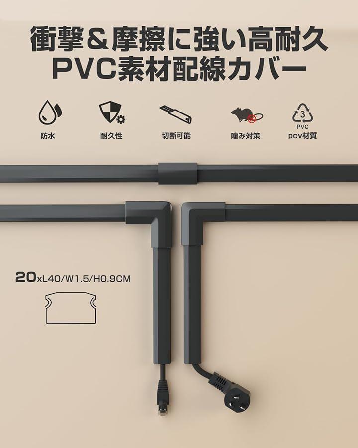 安全性と耐久性の両立 ケーブルカバーは、耐久性に優れた素材を使用しており、長期間にわたって使用できます。