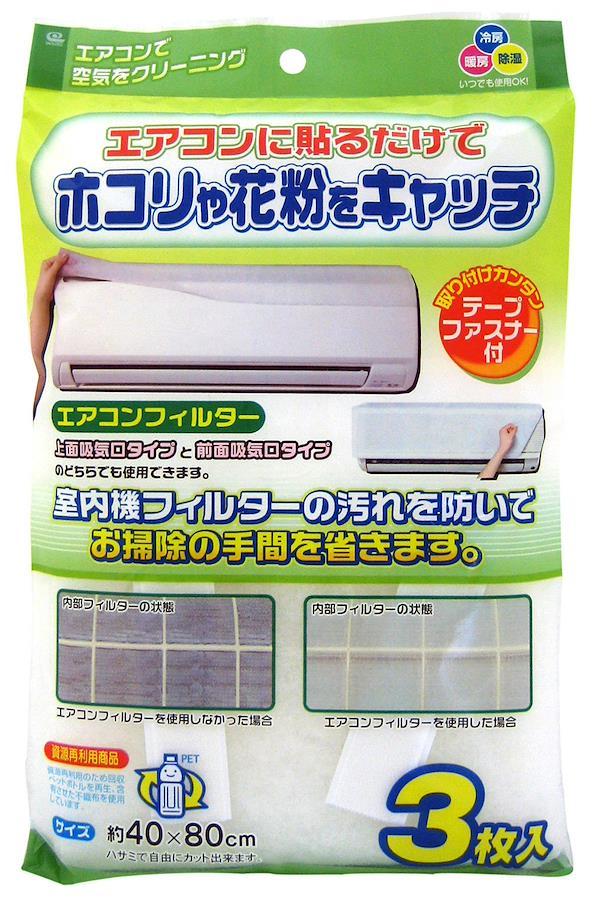 ●エアコン室内機の吸気口に取り付けるだけで、花粉・ホコリ・ダニ・タバコのヤニ等をキャッチし、お部屋の空気をキレイにする