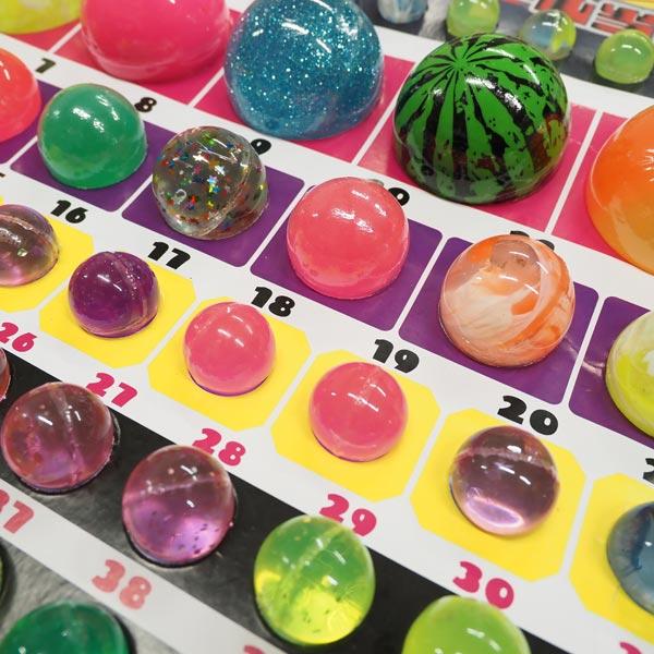こちらは厚紙の台紙に景品のスーパーボールがはめ込まれている状態の商品のため、輸送時の衝撃で景品が台紙から外れてしまう場合ございます。