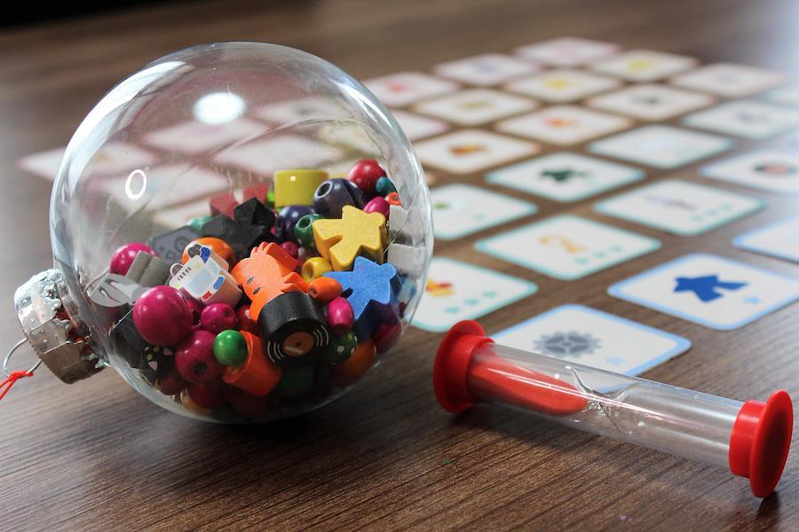 しゃかしゃかみっけは2歳から遊べるボードゲーム! ボールをしゃかしゃかして、カードをめくって、カードに描かれたものをみつけよう! 砂時計の砂が無くなる前に、★をたくさんあつめよう! 大人も白熱する2人用ルールもあるよ! -- しゃかしゃかみっけは知育や認知症予防の観点からもたくさん検討しています。 中でも気をつけているところを3つご紹介します。 2歳から遊べる安全性 しゃかしゃかみっけは子どもにとっての安全性を第一に考え、接着剤の選定や構造そのものの検討まで、2児を育てる親の目線で作っています。 目と音で楽しめるデザイン 子どもの目をひき、そのままインテリアにもできそうなデザインを目指して作っています。探す時の音も軽快なしゃかしゃか音になるように、中身のトークンはすべて木製にこだわって揃えました。 脳に刺激を 発想力を高めるために、カードにはあえてアイテムの名前を書いていません。また、ボールを振って上部から探すという体験を通して、空間認識力や考える力を育み、刺激する一助になればと考えています。