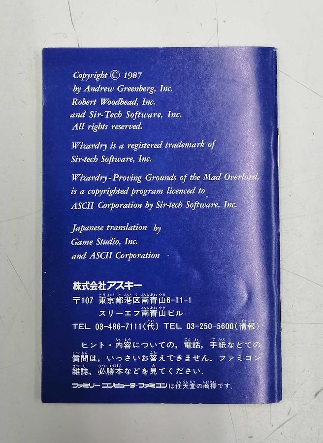 ゲームソフト ウィザードリィ ASCⅡ ファミコンソフト ASCⅡウィザードリィゲームソフト