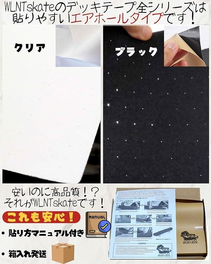 デッキの複雑な形状にも馴染みやすく、デッキテープアートも自由自在。透明を使いデッキカラーやグラフィックを強調、派手な仕上がりに。