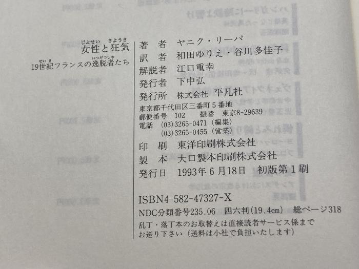 商品名:女性と狂気—19世紀フランスの逸脱者たち 平凡社 ヤニク リーパ