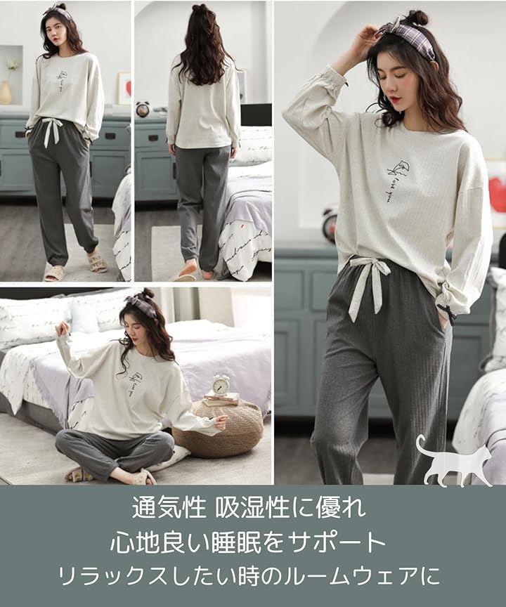 長袖 丸首 薄手なので春夏はもちろん秋冬も快適に着用できるルームウェア 部屋着 ナイトウェアです。
