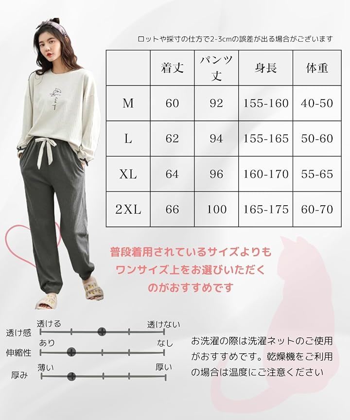長袖・長ズボンタイプで冷房対策にも使いやすいナイトウェアです。