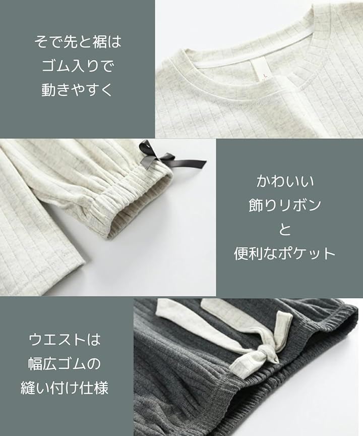 両サイドにポケット付きで、部屋着やリラックスタイムにも使いやすいレディースルームウェアです。