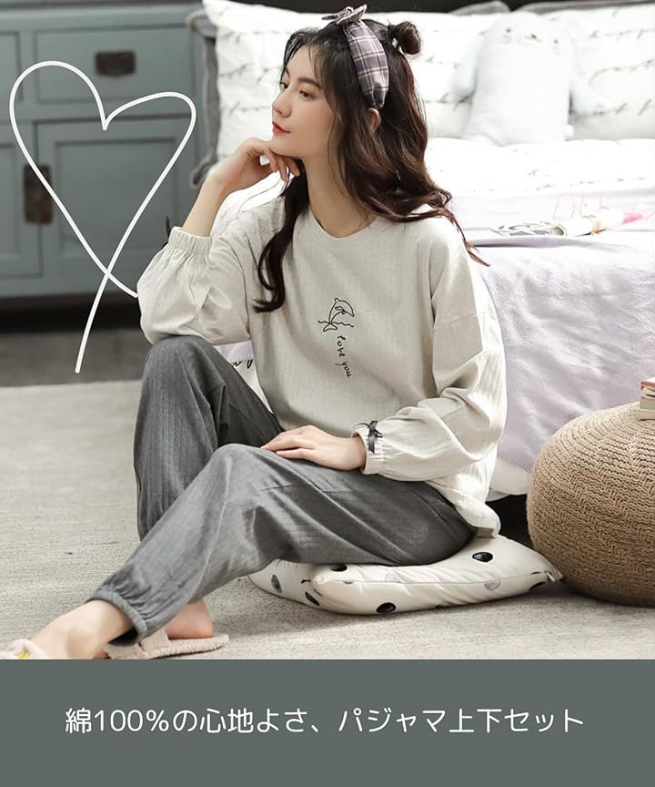 綿100%で作られたレディース向けのパジャマ上下セットです。