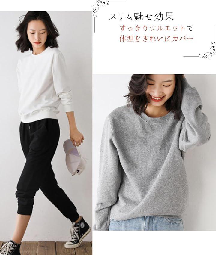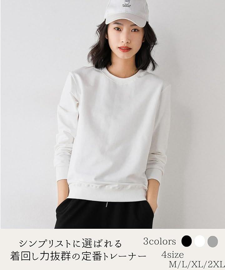 「シンプルなのに使い勝手抜群。綿100%トレーナー」どんなシーンでも活躍するトレーナー レディース 綿100%のシンプルデザイン。