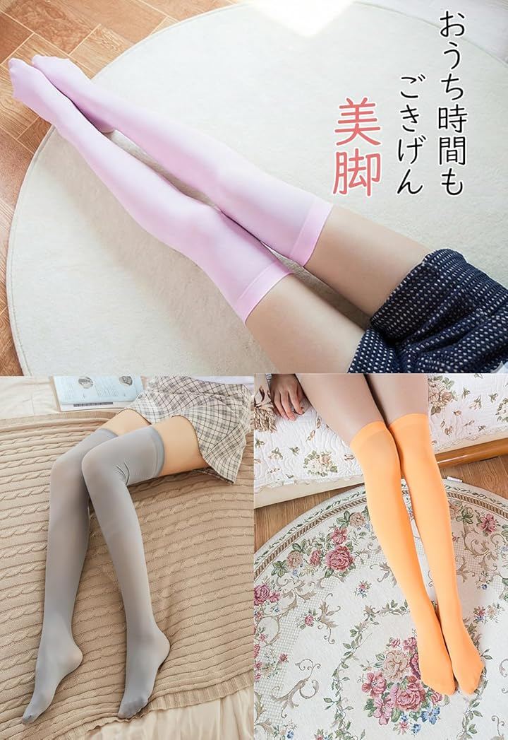 商品名:ニーハイソックス/サイズ:フリーサイズ(適応サイズ22cm~26cm)/素材:ナイロン、ポリウレタン/カラー:ブラック、ホワイト、パープル、ベージュ、ブラウン、レッド、ピンク、オレンジ、イエロー、グレー、ネイビー