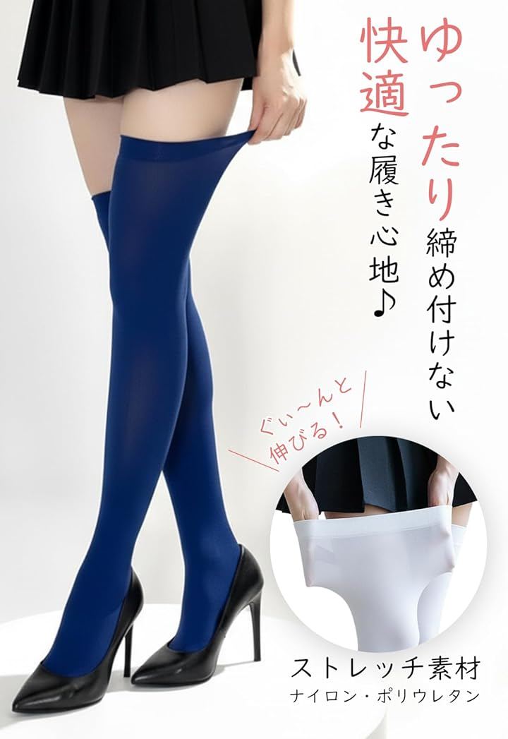 商品名:ニーハイソックス/サイズ:フリーサイズ(適応サイズ22cm~26cm)/素材:ナイロン、ポリウレタン/カラー:ブラック、ホワイト、パープル、ベージュ、ブラウン、レッド、ピンク、オレンジ、イエロー、グレー、ネイビー
