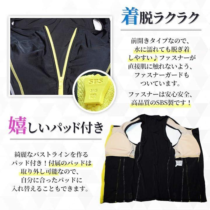 v特徴:着脱が楽な前面ファスナータイプ、直接肌が触れないようにファスナーガード付き、スタイルをよく魅せるデザイン、トップスとパンツを2段階のボタンで留める、めくれ防止スナップボタン、UVカットUPF50+、ウエスト部分は、紐で調整可能、取り外し可能なパット付き、スムーズな腕の回転が可能なノースリーブ、セパレートタイプ、ハイウエスト、キャップ付き、可愛いデザイン、伸縮性に優れた素材